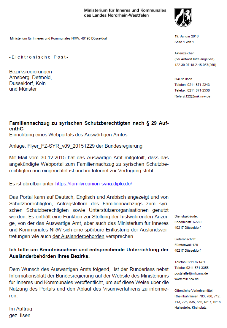 Fw: [liste-muensterland] Erlass NRW: Webportal für den Familiennachzug zu syrischen Flüchtlingen