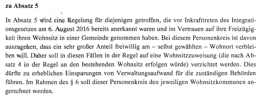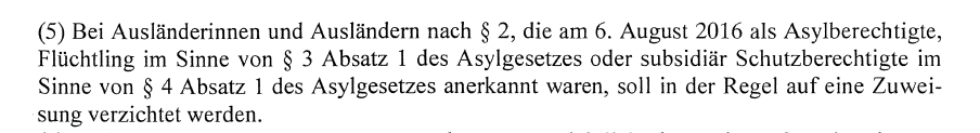 Beginn der weitergeleiteten Nachricht: Datum: Tue, 20 Sep 2016 22:15:28 +0200 Von: Claudius Voigt <voigt@ggua.de> An: liste-muensterland@asyl.org Betreff: [liste-muensterland] NRW: Entwurf einer "Ausländer-Wohnsitzregelungsverordnung (AWoV)" Liebe Kolleg*innen, mal was Interdisziplinäres: Was haben diese Formeln mit dem Ausländerrecht zu tun? Sie sind Berechnungsgrundlagen für einen so genannten "Integrationsschlüssel" in NRW, der zur Umsetzung der neuen Wohnsitzauflage für anerkannte Flüchtlinge in NRW dienen soll. Der Entwurf einer Verordnung mit dem griffigen Titel "Verordnung zur Regelung des Wohnsitzes für anerkannte Flüchtlinge und Inhaberinnen und Inhaber bestimmter humanitärer Aufenthaltstitel nach dem Aufenthaltsgesetz (Ausländer-Wohnsitzregelungsverordnung - AWoV)" <https://www.landtag.nrw.de/portal/WWW/dokumentenarchiv/Dokument/MMV16-4239.pdf> sieht nämlich vor, in NRW den Wohnsitz künftig "gemeindescharf" zuzuweisen, jedoch auf die Verhängung von Sperrbezirken zu verzichten. Ohne auf Details einzugehen: Die Verordnung sieht zwar vor, "in der Regel" auf eine Wohnsitzzuweisung zu verzichten, wenn bereits am 6. August 2016 eine Anerkennung als Flüchtling, subsidiär Schutzberechtigter vorlag - also in den Rückwirkungsfällen. Dies allerdings hilft wohl nichts in den Fällen, in denen bereits vor dem 6. August 2016 in Umzug aus einem anderen Bundesland nach NRW erfolgt ist. Denn dann besteht die Wohnsitzauflage für das Bundesland der früheren asylrechtlichen Zuweisung dennoch - völlig unabhängig von dieser Verordnung - automatisch und per Gesetz. -- Claudius Voigt Projekt Q - Büro für Qualifizierung der Flüchtlings- und Migrationsberatung Gemeinnützige Gesellschaft zur Unterstützung Asylsuchender e.V. (GGUA Flüchtlingshilfe) Hafenstraße 3-5 48153 Münster Fon: 0251 14486-26 Mob: 01578 0497423 Fax: 0251 14486-20 voigt@ggua.de www.ggua.de www.einwanderer.net Das Projekt Q wird gefördert aus Mitteln des Bundesministeriums für Familien, Senioren, Frauen und Jugend (BMFSFJ) sowie durch das Ministerium für Inneres und Kommunales des Landes NRW (MIK). Das Projekt Q ist Teilprojekt im IQ Netzwerk Niedersachsen. Das Förderprogramm „Integration durch Qualifizierung (IQ)“ wird durch das Bundesministerium für Arbeit und Soziales (BMAS) gefördert. In Kooperation mit dem Bundesministerium für Bildung und Forschung (BMBF) sowie der Bundesagentur für Arbeit (BA). Die GGUA Flüchtlingshilfe ist Mitglied im Paritätischen Wohlfahrtsverband (DPWV). Falls Sie im Bereich der Flüchtlingsarbeit in NRW auf dem Laufenden bleiben wollen - hier können Sie sich in die "Infoliste Münsterland" eintragen: http://www.ggua.de/ggua/fuer-den-newsletter-anmelden/ --- Diese E-Mail wurde von Avast Antivirus-Software auf Viren geprüft. https://www.avast.com/antivirus Viele Grüße Martin -- Tel.: 0176/48310835 http://fluechtlingshilfe-hamm.de https://www.facebook.com/fluechtlingshilfeHamm http://fluechtlingshilfe-hamm.de/data/_uploaded/file/Beitrittserklaerung.pdf Spenden: BIC: WELADED 1 HAM IBAN: DE58410500950021224860 _______________________________________________ liste-muensterland mailing list liste-muensterland@asyl.org http://www.asyl.org/mailman/listinfo/liste-muensterland